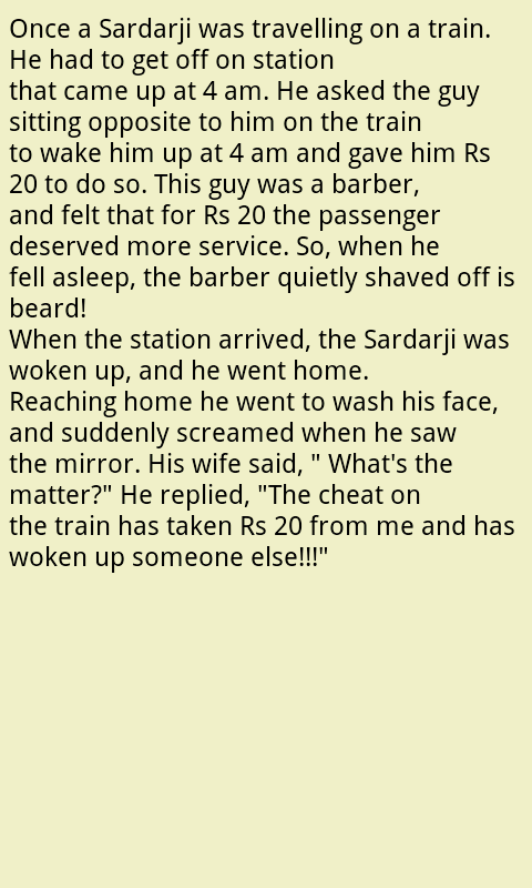 Is it true that Santa-Banta jokes are based on Satwant ... from qph.fs.quoracdn.net December 5, 2009 at 6:29 am If you like to write funny jokes then you can. Aur aap sab ager lot pot ke nhi hase to fir bolna. You idiot, have you ever seen a bl*ck snow man?? Funny jokes on police in hindi. Non veg jokes का अपना अलग ही हिसाब किताब है.इसीलिए अब हमने भी सोचा है कि आपके लिए एक से एक बेहतर non veg jokes in hindi लेकर आये तो आइये इन jokes in hindi को पढ़ के मजे लीजिये. We add new funny jokes daily for you, so you will never run out of fresh jokes ever again. Sher ka shikar karne ja raha hoon mere darling!